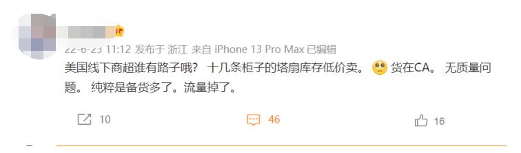 近日,有卖家发微博求援:“美国线下商超谁有路子?十几条柜子的塔扇库存低价卖。货在CA,无质量问题,纯粹是备货多了,流量掉了。”
