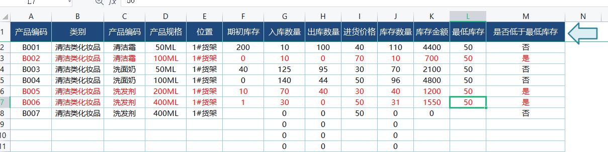需要进货物品清单:自动统计低于最低库存的商品(图12)