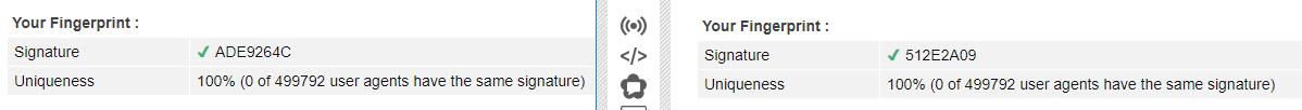 由于读出添加了随机的噪声,如果网站应用了数据分析技术,便会发现指纹是100%唯一的。