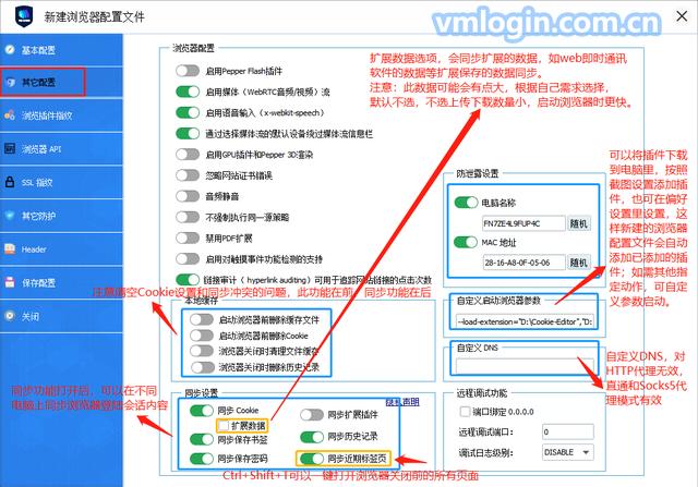 VMLogin 新建浏览器配置很多初级用户不理解相关选项的意思,这里做一个详细的说明。