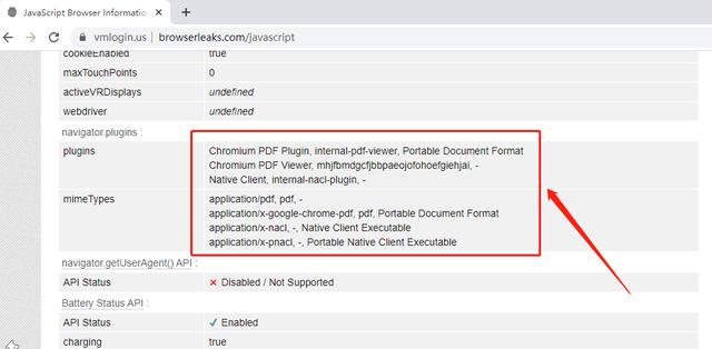 上图就是检测浏览器插件的截图。