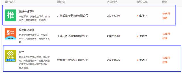 11、购买软件,服务市场搜索爱推一键下单,妙手,主账号首次购买后立马进行授权