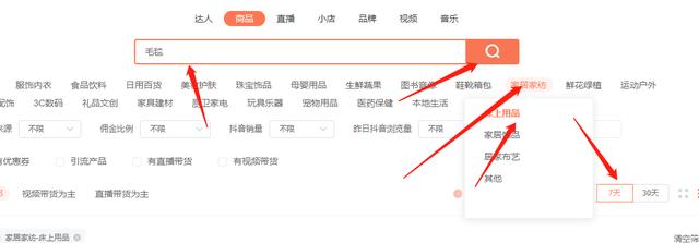 ①、可以通过第三方软件进行数据分析【蝉妈妈】,找7天内的销量排行里面客单价比较低的产品,销量较高作为母产品。然后复制标题去抖音搜索即可。