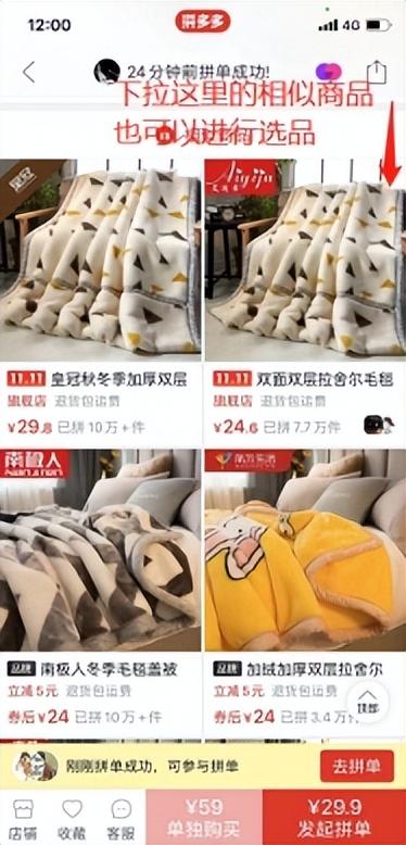 上面找到符合标准的品之后,在拼多多下拉同样可以找到很多相似的品,符合货源标准的产品,我们同样可以上到抖店。