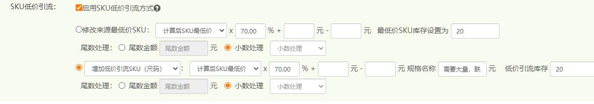 ③、(拿货成本高)把要动销的链接加上新的sku,sku为要送的东西,湿巾,纸巾,衣架,袜子,等等拿货比较低的且宝妈需要的产品,同样在营销中心中的限时限量购进行设置。