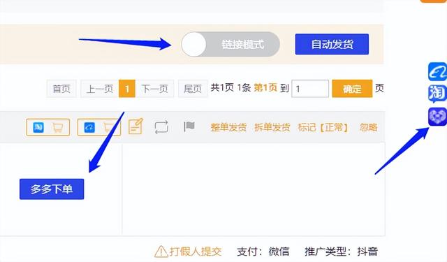 3、开链接模式,右边登陆拼多多账号,点击多多下单,付款即可
