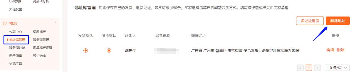 10、地址库里面设置发货地址,地址设置为办公地址,姓名设置为具体地址联系客服