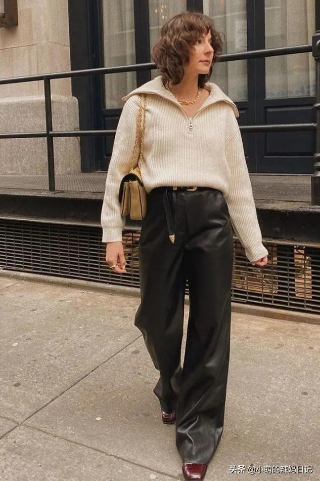 当身穿的是宽松的polo衫,遮肉慵懒不说,它散发的是女人优雅大气的气质,配上阔腿裤穿,又a又飒气的女人,尤其是皮裤,营造知性的性冷淡风。