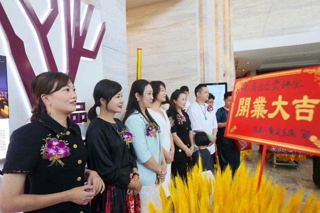 王志强 摄影报道 金秋时节,港城秋高气爽,秋花烂漫。在新中国成立72周年之际,祖国繁荣富强,高氏白云珠宝也于10月2日进驻湛江喜来登民大中心。翡翠玉石丰富湛江人的轻奢饰品、休闲生活多了一个购物好去处。当天,高氏白云珠宝创始人高存梓、湛江合伙人陈苗华等共有一百多嘉宾为白云珠宝进驻湛江剪彩。百多名着装靓丽的少妇们受邀参加捧场,现场鲜花盛开,百花争艳,浪漫热闹,锣鼓礼炮齐鸣祝贺湛江店盛大开业迎宾客,引来众多游客驻足观看赞叹。