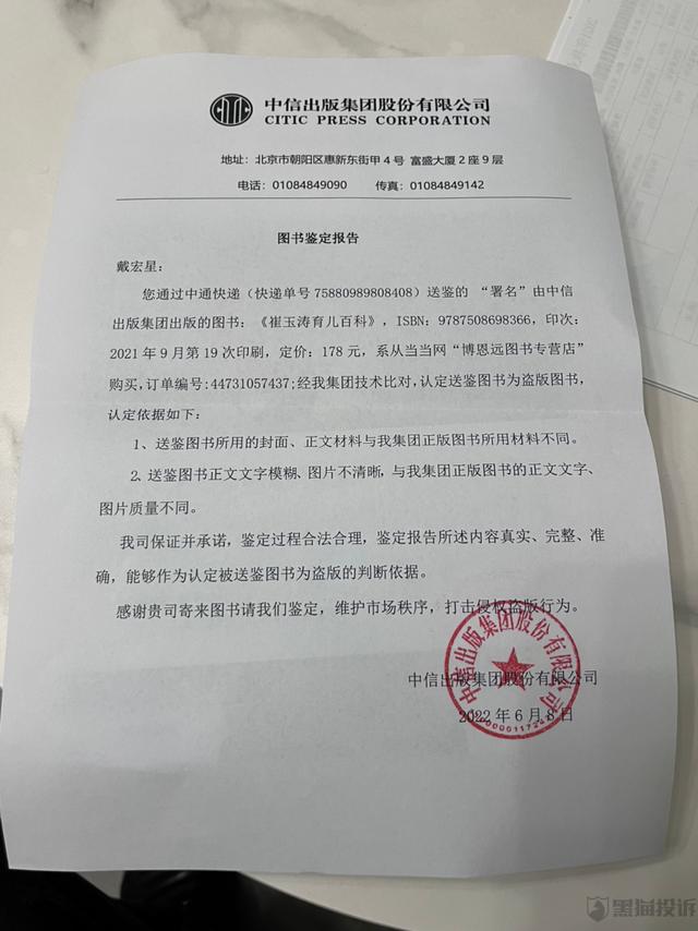 今年5月,有消费者在当当网“博思远图书专营店”购买了一本《崔玉涛育儿百科》。到货后发现图书质量很差:图片模糊,纸质粗糙。后经出版社鉴定为盗版书,当当网客服却还要求提供开箱视频。对此,消费者感到十分气愤:“我买书的时候本着相信当当网,哪里想到去拍开箱视频,现在当当客服以此为由不继续处理”。