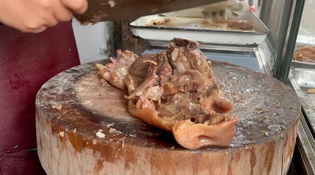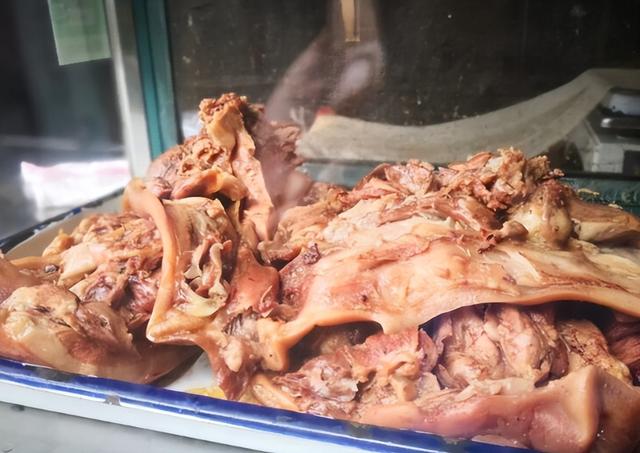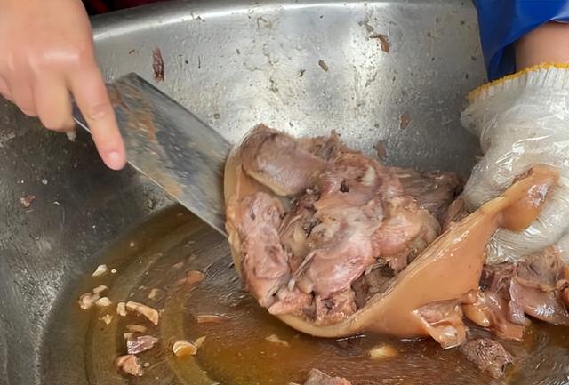他家让人吃得放心的,是用的新鲜的猪头,而不是冻货,买回来的猪头处理得很干净,处理好的猪头放在大锅里炖煮,煮得特别烂,吃起来糯糯的,但是不腻,可能就是因为咸的原因。
