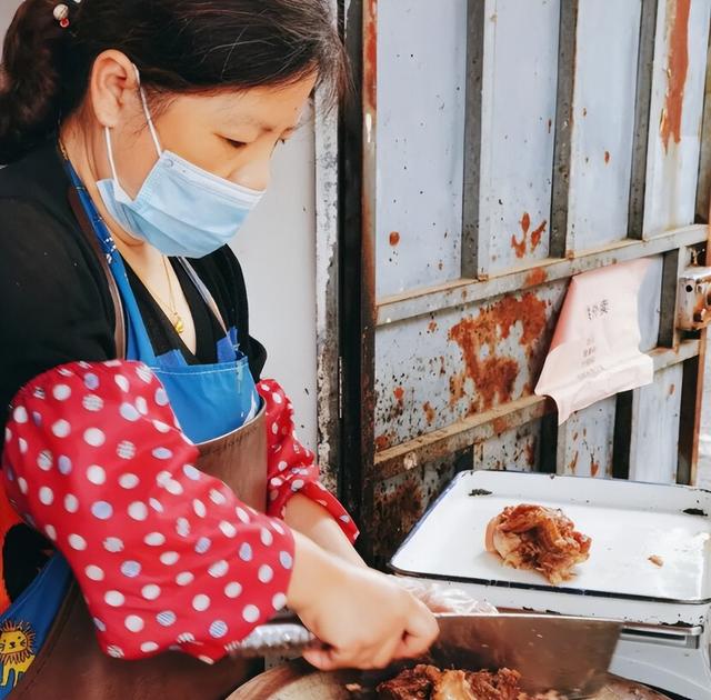 他家的猪头肉卖得不便宜,50块钱一斤,喜欢吃的人觉得他家的味道特别香,也有人吃过却觉得味道太咸,却被当地人回怼只有咸了才香。