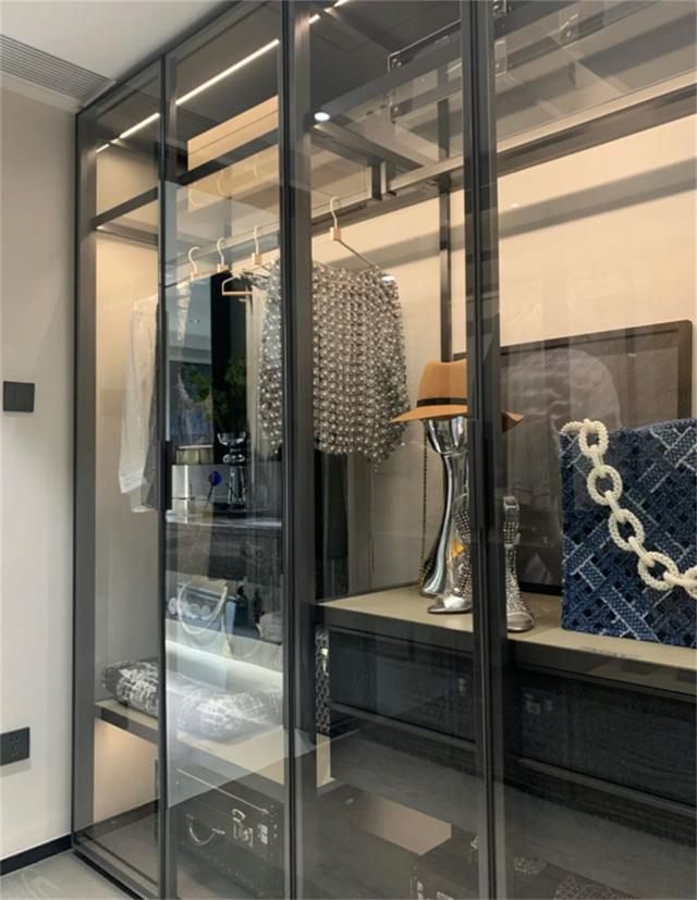宛若陈列橱窗的玻璃门衣柜,的确很显高级,但我认为它并不适合居家使用。玻璃门不但会反光,而且通透性太强,柜子内摆放的东西一目了然,没任何隐私。