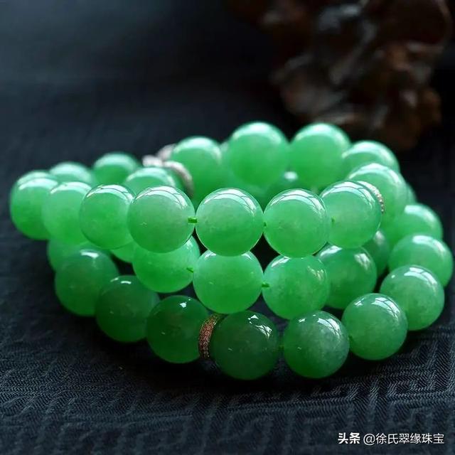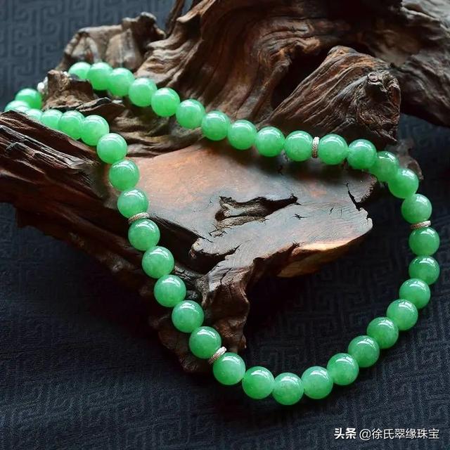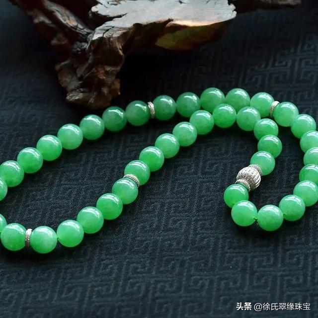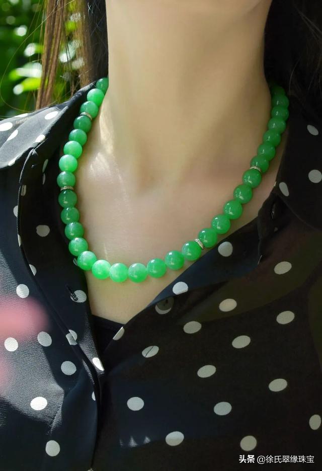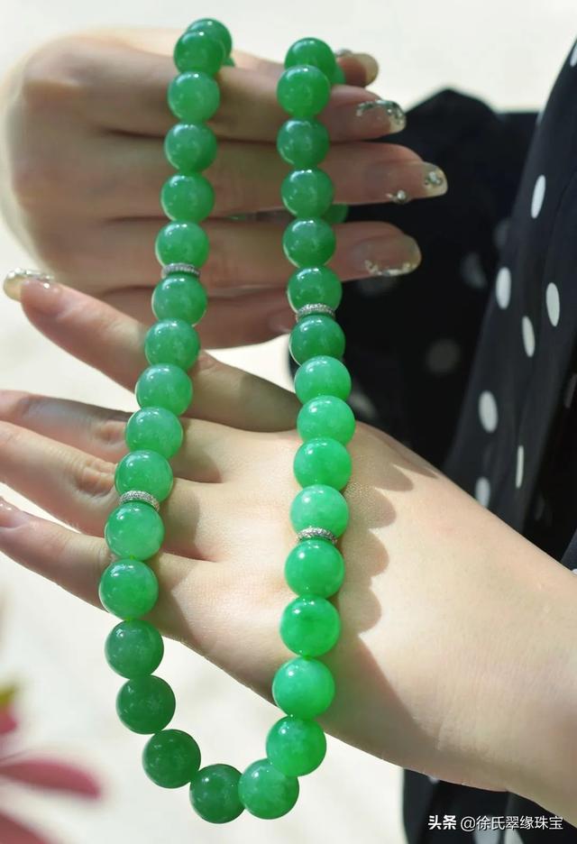 给大家推荐一串果阳绿细糯种满色珠链,单论常配饰效果和价格的亲民性,这一条珠链绝不逊色于佳士得69,037,500港元的帝王绿拍品。