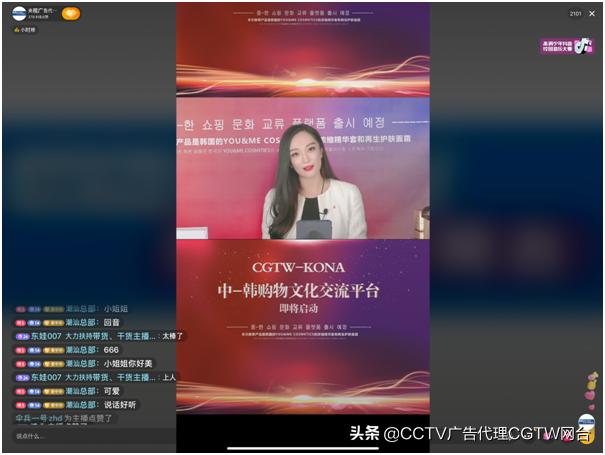 2022年是中-韩建交30周年为促进两国之间的购物文化交流,通过CGTW(CCTV广告代理CGTW制播分离中心)的中国微博平台上21年12月22日晚上18点到21点进行直播。CCTV广告代理CGTW制播分离中心为两国国民特意选择韩国优秀产品给消费者养成良好消费习惯指导购物文化交流方向。