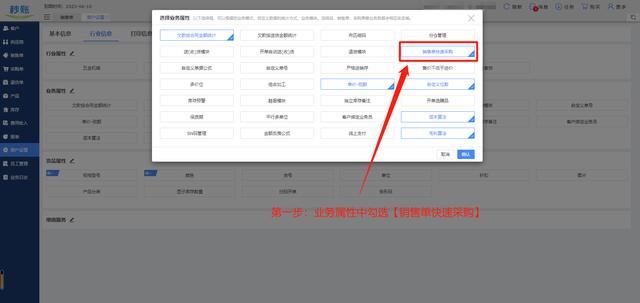 【操作路径】:商户设置-行业信息-业务属性-销售单快速采购