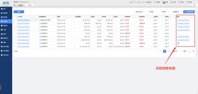注意:用户可在秒账采购单界面找到关联的销售单据。