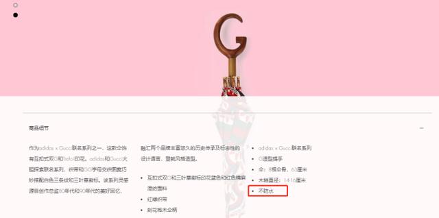 事实上,不少奢侈品并非是为了经济实用而生产设计的,也并不适合所有人使用。对于此次Gucci和Adidas推出的“不防水”联名伞,也有人认为这是品牌方借此作为噱头吸引流量的方式。