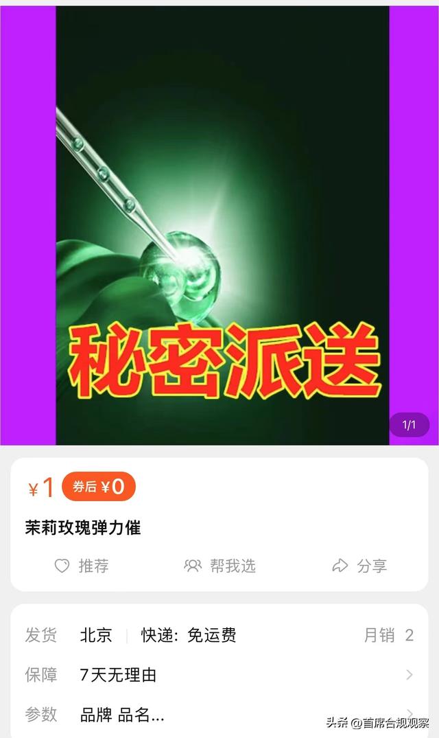 比如这款名叫茉莉玫瑰弹力催的产品,点进去之后没有任何产品介绍,月销显示为2。