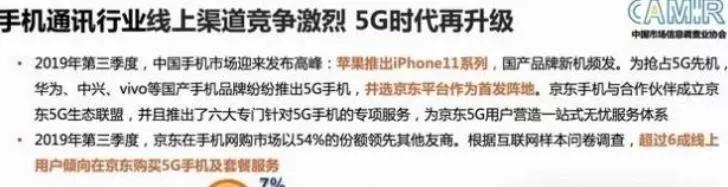 以手机行业为例,早在2019年京东就以54%的市场份额在激烈的线上渠道之争中脱颖而出,排名第一。