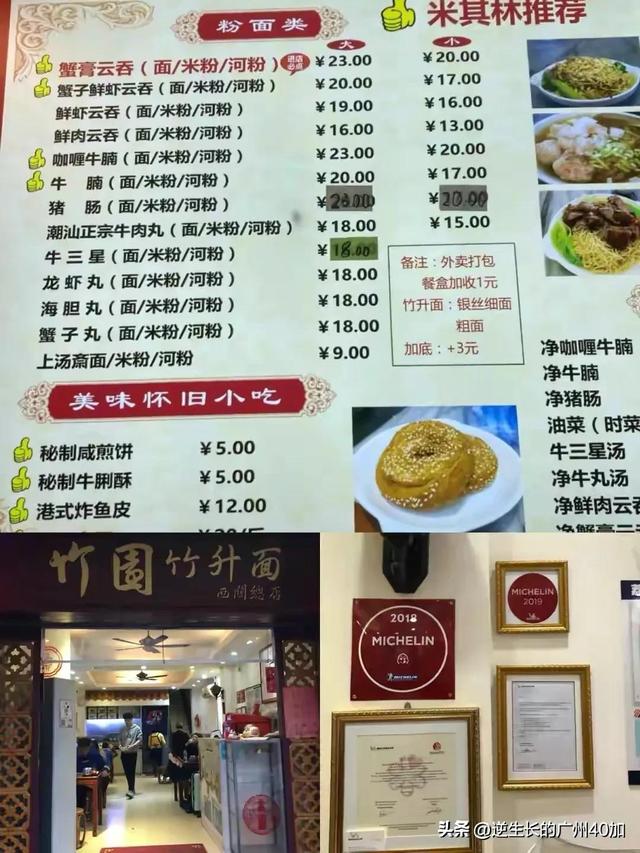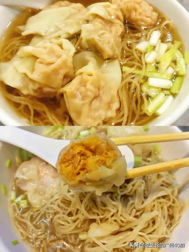 明星林峰经常打卡的香港面铺,里面大大只字写着他家的历史是从广州西关日据沦陷逃难到香港开店的,根本就是地道广州云吞面,食神蔡澜先生都话广州才是正宗地道云吞面的发源地!下面这家就是超多香港明星埋单打卡的米芝莲级别却很低调的西关地道正宗云吞面店,名字叫做“竹园竹升面”,他家最创新的就是蟹膏云吞面了,咬开真的能看见满满蟹膏沉浸其中。但我觉得不太对我个人口味,如果有喜欢的可以试试。我觉得正宗的云吞面一定是鲜肉的云吞,他家鲜肉云吞皮很薄,肉质紧实鲜美还会透出麻油的香味,属于佳作级别,最需要关注的是他家的竹升面,能吃的出鸭蛋的香味(正宗的竹升面一定要放鸭蛋的),面身筋道爽滑有天然麦香味,配合正宗大地鱼虾子猪骨熬制成的鲜美汤底,的确很配得上米芝莲级别!另外他家咸煎饼也是很棒的出品,地道怀旧的咸甜酥脆口感,现点现炸超级新鲜的良心制作!