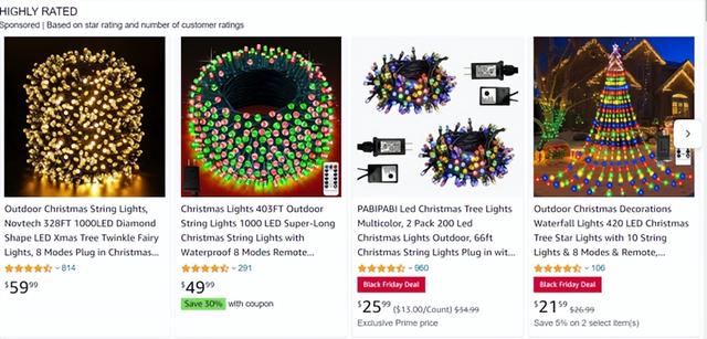 说到旺季热销的灯具产品,想必有不少人都会第一时间想到灯串。这类产品有多好卖,在亚马逊一搜便知,留评可观的产品非常多。