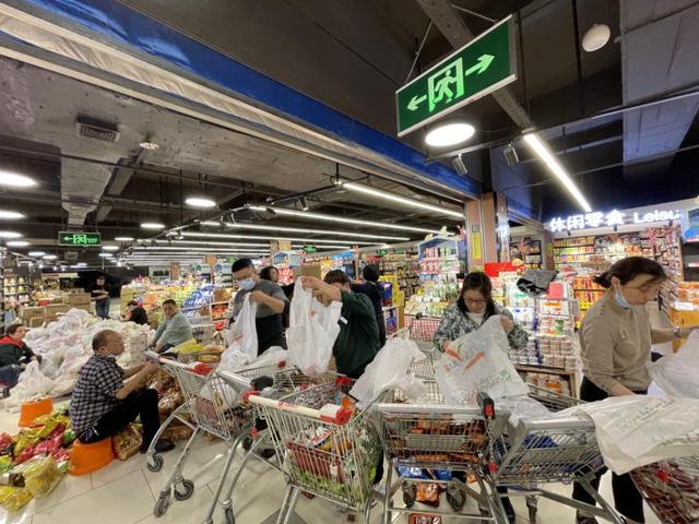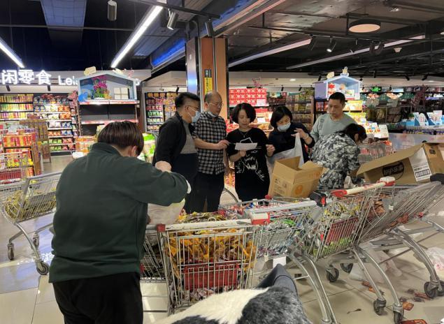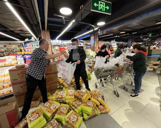 当晚,团队按照职责分工,成立了备货转货、分装打包、组装核对、配送运输4个小组。“列清单选品推荐不是越简单、越少、越容易分货就好,而是真正从客户需求出发,主动推荐品质优、品种多、口味好、价格惠的10多个商品组合。”李远涛介绍,食品卖场经理精心选择商品,客户确认清单后,立即清点库存;理货区主管将货物从仓库转运到超市主通道;其他人员一字排开,每人负责1-2个单品分装,一条流水作业线火速搭建起来。奋战7个多小时,终于在凌晨5点完成了1300份物资的分装打包。