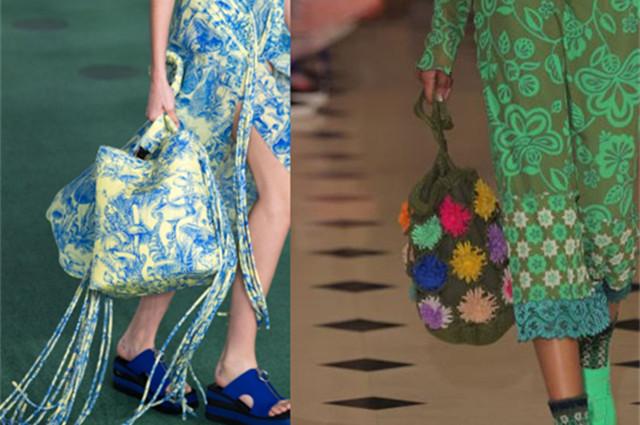 左图:流苏和钩针编织等,传达创作者温暖的工艺包,也因其对可持续时尚的兴趣而广受欢迎。选择能够提升春夏气氛的包包。斯特拉麦卡特尼,植物印花包让流苏飘逸起来。