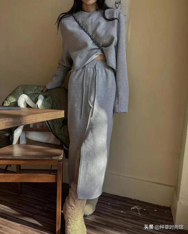 但是在挑选卫衣的时候,需要注意一下材质的薄厚,如果裙子不是很厚实,卫衣也不能太厚,上下统一,融合度才能更高。