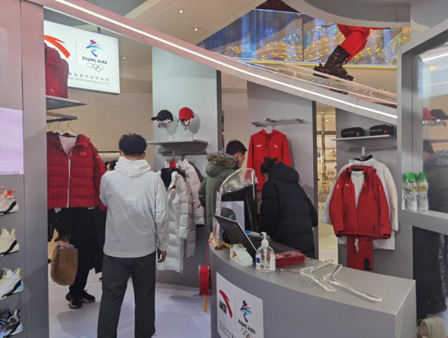 在另一安踏店,运动员同款领奖服、领奖鞋摆在入口最显眼的位置,该店的奥运相关运动服装同样销售火爆。“领奖服是限量款,店里共有100套,女款的全预订完了,可以买男款,可以穿,也可以拿回家收藏。”一进门,一位导购热情地迎了上来说:“还有羽绒服、卫衣、滑雪服,都是‘国旗款’。”