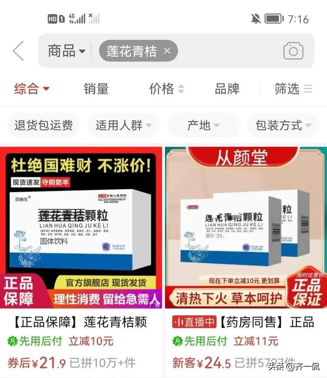 现在市面上莲花清瘟一盒难求,一款打着擦边球的“莲花青桔颗粒”遍布各大购物平台。