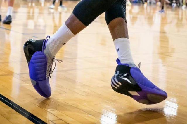 当然,还有一个鞋子,狗哥觉得哈登7代也借用了他的设计,我们接下来看下哈登7代的第三个亮点,阿迪logo的运用,以往哈登系列鞋款,并没有特意放大化logo,也没有把三道扛的设计融入到鞋子线条中,logo对整体的影响,不是很大,但这次,哈登7代把logo放在了屁股这里。