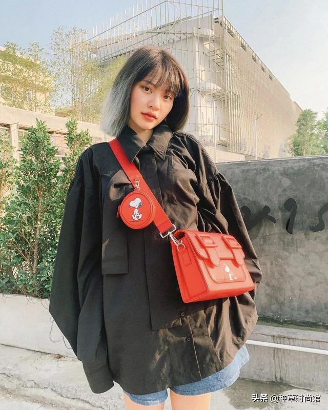 短上衣+阔腿裤+陶陶包都意外的合适,