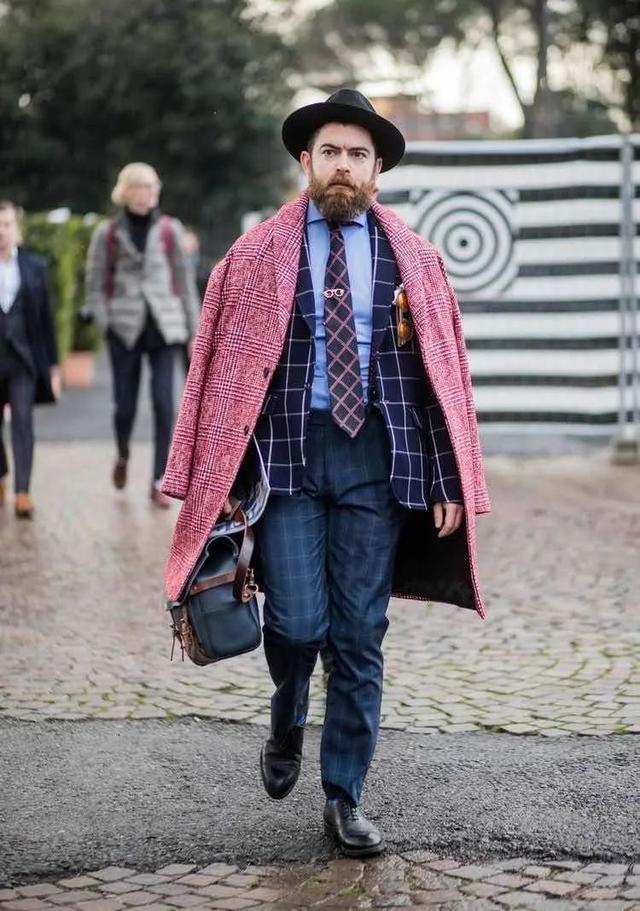 另外,粉色对于中年男人来说是绝对的“踩雷色”,即便是在造型中局部出现,也会显得很突兀,并且直接拉低了整体穿搭的气质和气场,看起来还有点“娘”。