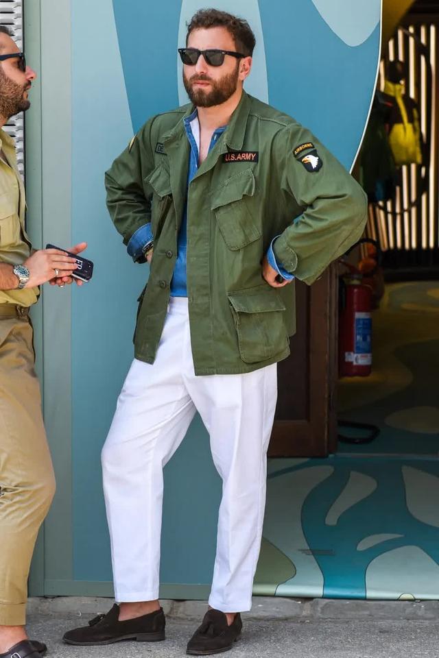 军绿色自带时尚DNA和硬朗属性,在造型中有助于提亮视觉,也能起到减龄效果。建议搭配中性色,譬如黑色和白色,与军绿色组合在一起高级又有型。