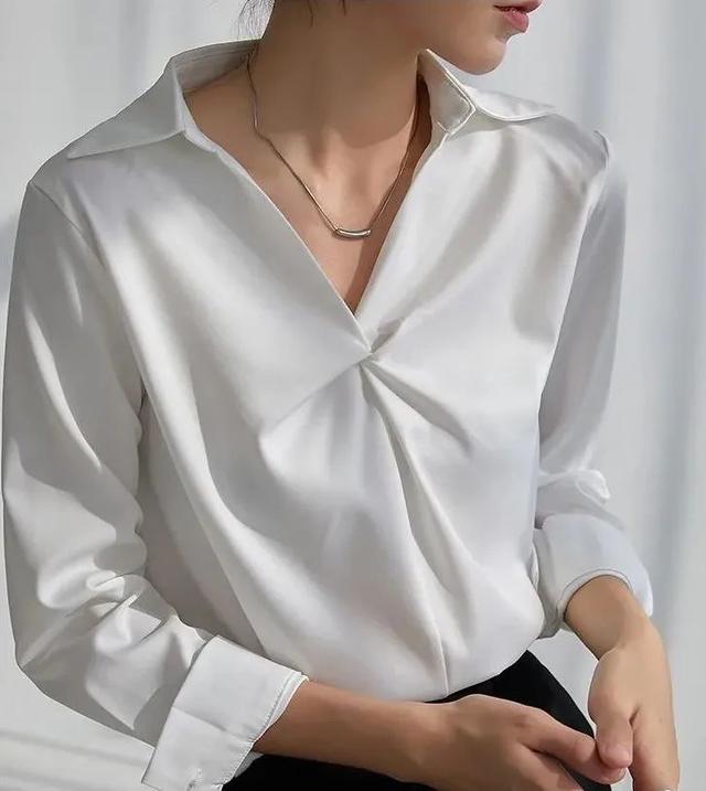 衬衫的材质,棉的、麻的……都有,但女人一定要有一件缎面的!抬气质绝绝子。
