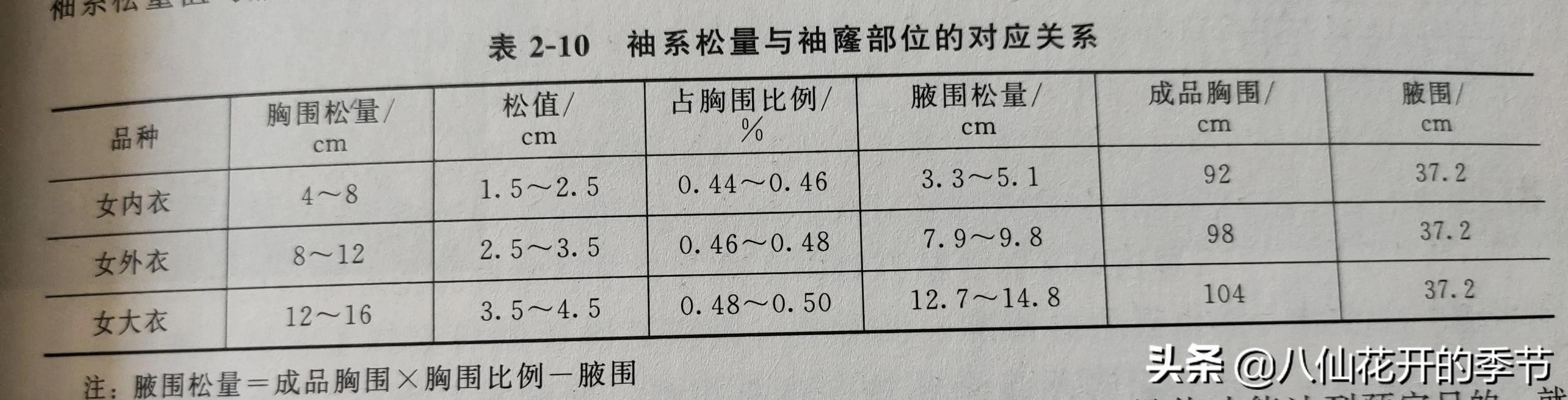 外衣胸围放松量=基本放松量?内穿衣服总厚度放松量?面衬里填充料总厚度放松量(薄料可省略)。