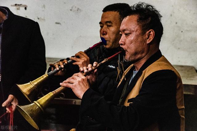 办丧事,那就是更甚一筹的悲伤。喇叭师傅以吹出来的声音,布置一个场景,一种氛围。吹的是曲子,却好像在讲一个人生故事。人沉浸其中,更加怀念逝者的音容笑貌,一言一行。