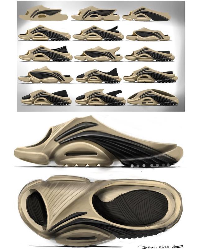 李宁在很久之前,就曝光了一款拖鞋,他没有特别的名字,但颜值非常高,很多朋友都在等他的到来,有个好消息,他终于和大家见面了,但热度比较高,价格比较一般。这双鞋的设计师也晒出了一些之前的方案图,真的是每一款都超级帅。