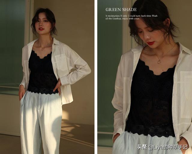 当然,20+℃的天气,单穿渣女衫未免过早,不妨试试渣女吊带+外套的组合,无需刻意凹曲线,绝对能让你稳稳赢过路人。