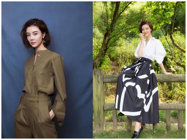 不管是高腰宽松长裤还是包臀长裙,图中的两款造型都不怎么凸显臀部线条,尽管车晓的颜值十分抗打,但身材上的缺点却让她丧失了很多女人味,本来就是短发的造型,整个人看起来就更加的中性。