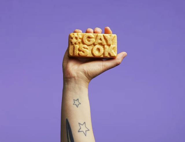 为了抗议佛罗里达州的“Don't Say Gay”法,LUSH 今年“骄傲月”活动围绕“GAY IS OK”的主题展开,包括带来了一款印有这一标语的金砖造型香皂,来支持 Equality Florida 组织。