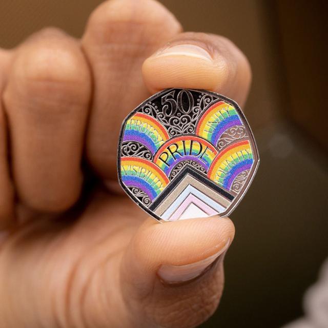 今年是英国首场 Pride 游行举行 50 周年,为纪念这一时刻,英国皇家铸币厂(The Royal Mint)和 Pride in London 合作推出了一款纪念币,这也是首款为 LGBTQ+ 社群打造的英国硬币。