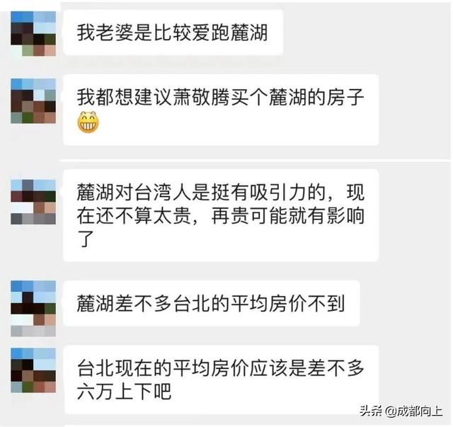 此外,成都物价也是很多外地人愿意留在成都的原因之一。他说: “ 我的老婆爱跑麓湖,我都想建议萧敬腾买麓湖,现在价格还不算太贵,差不多台北平均的房价都不到。 ”