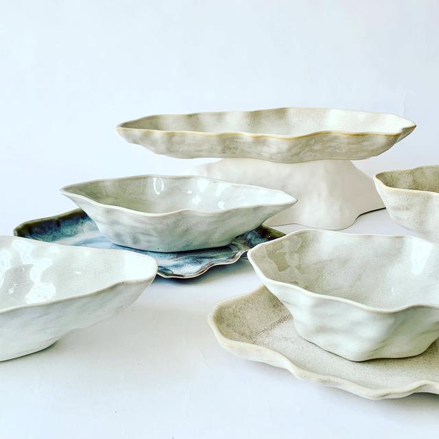 清雅山居主题的组货应用以米白色调为主,结合手工染色技法和花卉工艺,搭配简约随性的廓形,诠释返璞归真的寻隐理念。