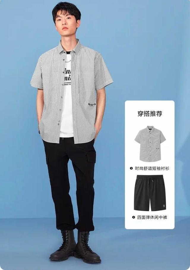花衬衫也是夏天必不可缺的,我居然在海澜之家看到了花色这么好看的花衬衫,着实是让人有点惊奇啊。而且它是降温的蓝色,视觉上会达到清爽又减龄的效果。在搭配上也可以像他这样玩出花样,用深色的条纹裤子和棕色的领带打造出全身不羁的花花公子即视感。