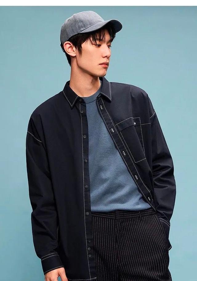 除了上面的短袖之外,下面这这一件衬衫长袖衬衫同样值得买,非常的百搭,下面无论穿牛仔裤还是黑色的裤子都能够让你显示出成功人士的气息。