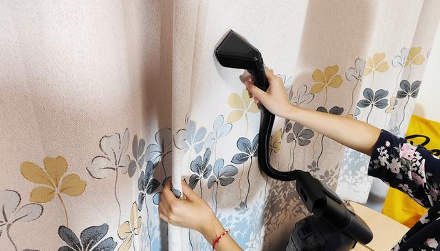 特别是在打理窗帘时,直接将机器放在窗台上,然后用软管刷头上下来回清理窗帘布即可,十分方便。