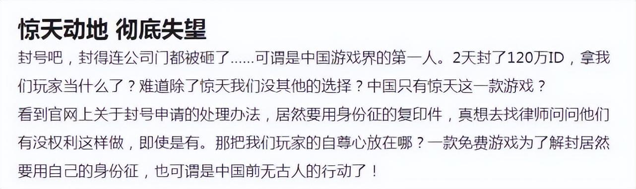 终于官方看不下去了,躺着收钱的态度也一下子严肃了起来。当时官方的解决办法很简单,回档一个多月还外加封号!而更彻底的是官方宁可错杀1000也不放过1个的态度,导致2天的时间封禁了120万个ID,大多数玩家没有开挂也按开挂处理了。