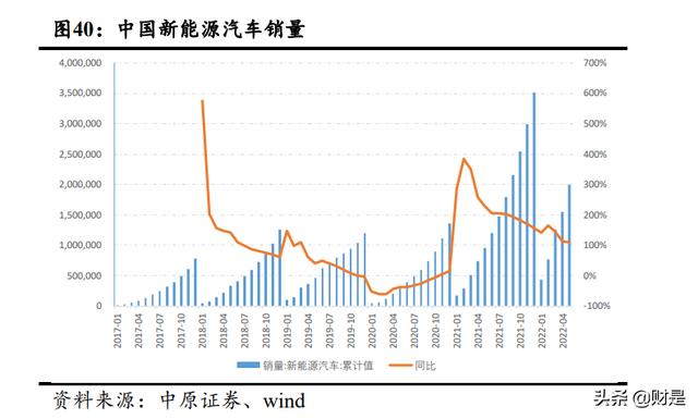 2022 年 1-5 月,我国新能源汽车累计销量达到 200.3 万辆,同比增长 110.91%,继续保持 快速增长态势;国外新能源销量同样呈现快速增长势头,今年前五月欧洲新能源汽车累计销量 68.5 万辆,同比增长 10%,美国销量 38.6 万辆,同比增长 73%。根据相关预测,2022 年全球 新能源汽车的销量预计将近千万辆,同比增长超 40%,到 2025 年,销量有望达到 1640.0 万辆, 整体渗透率超过 20%。